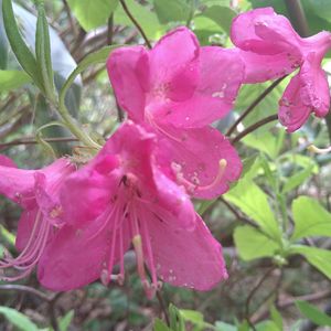樹林🌳🌲の林道傍らにムラサキヤシオ💗とオオカメノキ(ムシカリ)が涼しげに咲いていて~足元👣木道の隙間には見たことがある様なピンク色の蕾💓を見つけましたが、何のお花だったのでしょう⁉️😅 🏷️19日はピンクの日🏷️乙女色クラブに参加させて頂きます🥰