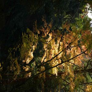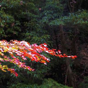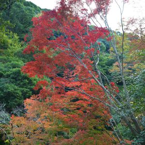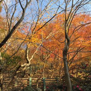 《モミジ》ムクロジ科カエデ属 箕面の山にある変わったモミジの大木です。川沿いで川に向けて斜めに立つ巨木。今日の箕面の紅葉は、少し始まったばかりで、未だ見頃ではない感じでしたよ☺️。