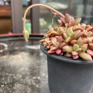 6月頭にニョロっと出ていた花芽がここまで伸びてます✨ アドロミクス永楽、どんなお花か楽しみ😊 ここ数日、先っちょも、少し大きくなってたり、色づいてたり、動きが見えてソワソワします。 他の多肉たちは、エケベリアは焦げたり虫がのさばってたりばらけたり😅 リトープスは、今年は完全断水ではなく、鉢が軽くなってから夕方の水やりをさらっとしてます。なんとか生き残ってると思いますが、見えないところはわからないですしね。