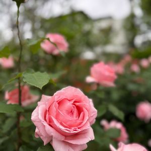 今、二番花が優しく咲いてます🌹 雨の降る公園も静かで好き💚