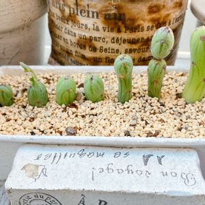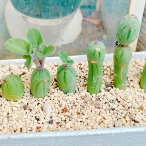 ☀️27°/13° 𓇥七宝樹 前回投稿の時は 3.4.5男に葉っぱが出てましたが その後 6男以外ぜんぶに葉っぱが出てました𖥧 𖧧 🏷七宝樹saku