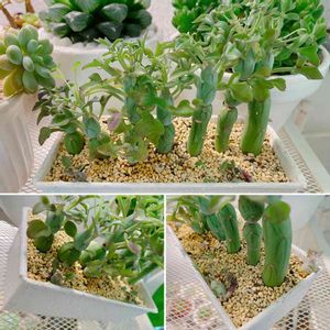 𓇥 七宝樹 七宝樹だから7本 背の順に並べて 植えた七宝樹。 今は育成ライト下で管理中。 葉っぱワサワサ〜 子株もポコポコ出てきてます(*ˊᵕˋ* ) 前回のpostで 9男まで確認できてましたが 現在↘️10男、11男も誕生デス 🏷七宝樹saku