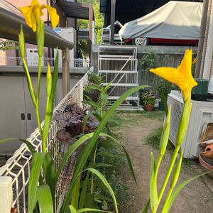 紫色の花菖蒲の苗を買ってオマケを頂きました。オマケの方がたくさん花が咲いた。 🥰 新谷花菖蒲園さまありがとうございます。紫色と一緒の場所へ植えたら良かったです。