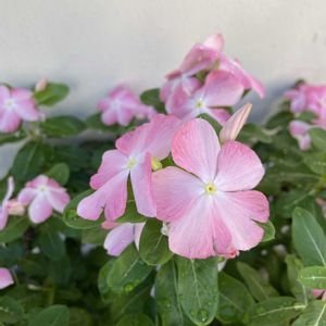 昨夕から雨降り☂️今朝もザーザー降りです ①昨日の こぼれ種ニチニチソウ この場所では 白花の方が たくさん咲いてます♡ 作業メモ 昨日の植付 全て半額以下 値下げポット苗😅 ブルンネラ ホスタ アムソニア ストームクラウド ペンタス ジニア プロフュージョン トレニア スイートマジック