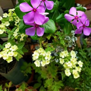 日々草 夏花火と 日々草タトゥーラズベリーを 寄せ植えにしました ひと月でもりもりに なりました♪ 酷暑に負けない日々草 大好きです 明日も暑いみたいですね 早く涼しくなってガーデニングを 楽しみたい💦