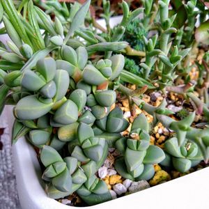 pic1⃣ Braunsia maximilianii ブラウンシア 碧魚連 夏のダメージは毎年のことですが 今年も元気に回復してくれて有難い🙏✨ '22年8月シマムラ園芸さんからお迎えして …増えたり減ったりを繰り返しながらも 3年経ちました😊🫶 pic2️⃣ Corpuscularia lehmannii コルプスクラリア・レーマニー レーマニーも'22年11月 フローラルリーフさんからお迎えし、 '22年12月にgarageでレーマニー錦を追加 (📛ベルゲランサス 夕波錦) なかなかシワシワが治りませんが 健気に頑張ってくれてます🥹 pic3️⃣ Senecio peregrinus セネシオ・ドルフィンネックレス この子は二代目なんですが、 何時からいるのか記録が無くて😓 色んな鉢に挿してるので、あちこちから 元気に伸びてきてますꉂꉂ ⱴ(-͈᷄ ε -͈᷅ ⱴ) 🏷トトの日 🏷元気な月曜日❗ 参加させていただきます(⋆ᴗ͈ˬᴗ͈)”