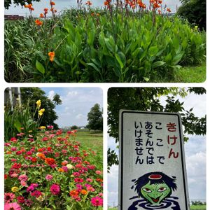 花の向こうは中川(一級河川) 河川敷にある公園です 季節事に花が入れ替えられていますがボランティアさんのお陰です 花以外は何もないのがよいですね (トイレはありますよ)