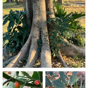 木々の葉が落ち見回す事が出来 今まで気(木)がつかないものも発見 ドラセラと書いてあったが観葉植物が大きくなった? 木の周りにアオキ、シュロ、シロダモと仲良ししているが大黒柱の木が分からない(葉は散っていた) 季節が違うと景色が違う