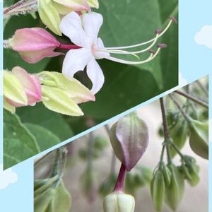 クサギ(臭木) 薄緑色は蕾で無くて萼でこの中に蕾が隠れているそう❗️萼が赤色を帯びてくると5深裂し中から白い蕾が出てくる 咲くととても甘い匂いが してきます 何時もは8月頃なんですが少し早いです 葉浦は毛があって触って気持ち良い