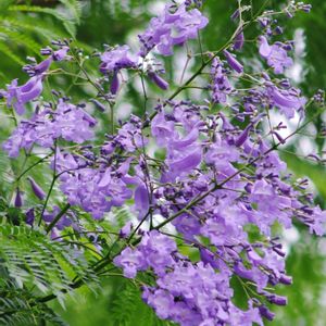 ジャカランダ シウンボク 紫雲木 ノウゼンカズラ科キリモドキ属の落葉高木 アルゼンチン、ボリビアなど南米原産 カエンボク・ホウオウボクと共に「世界の三大花木」と、呼ばれています 6月上旬、板橋区立熱帯環境植物館のエントランス脇のジャカランダを見てきました。ココでは 5月末頃から咲き始め 1ヶ月位楽しめるようです 原産地では50種ほど自生していて、日本に移入し植えられている多くは、 ジャカランダ・ミモシフォリア Jacaranda mimosifolia 樹高 7.5~15 m 葉っぱは シダやネムノキに似た感じ。細かく裂けた羽状複葉 15~35 ㎝の大きな円錐花序に50~90個お花をつける。 お花は長さ 2.5~5 ㎝ の 曲がった筒状鐘型 キリのお花とそっくり! ( キリのお花 投稿 2020 5/23 ) 熱帯の原産地では 乾期の終わりに落葉した状態で花を咲かせ、その後に新芽を出すので、この写真のように葉っぱが茂ってお花が咲く姿とはずいぶん違います。 例えば、桜の木がピンクに染まるように ジャカランダの満開時は お花が木を覆い 名前の通り 紫色(フジ色)に染まった雲のよう。 高い所で ふわふわワサワサ 咲いてるので 1つひとつのお花の様子がイマイチわかりにくいですね。 撮影している 目の前にポトリと落っこちてきたお花を観察しました。(キリの花もこんなふうにポトリと落ちてきますね) むむむ?! 何だか不思議なフサフサ毛があるぞ?! そ~っと花びらを切り開いてみました。 あれれ??? どうなってる? 調べてみると… 雄しべ5本、雌しべ1本で 落っこちてきたお花には雌しべは残っていません。胚珠と木に残ってます。 先に葯をつけてて短いのが4本ありますね。それが雄蕊。 ひょろ〜っと長く 葯は持たず、花糸に細い毛があるのは 仮雄蕊 だとわかりました この仮雄蕊の役目について、まだ詳しい事は分かっていないようですが、おそらく虫を誘ったり 効率的に受粉する為の何らかの工夫だろうと考えられてるそうです 撮影 2025 6/8 板橋区立 熱帯環境植物館