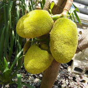 パラミツ 果実は幹や太い枝に連なって実ります 重さ40~50kgになるものもあり 世界最大の果実で 熟すと黄色になり、香り 味ともに 甘く食用にされます ジャックフルーツとも呼ばれてます インド~バングラデシュに分布 これはまだ黄色じゃないのかな あまり香りは感じなかったけど、 マスクのせい⁉️ ジャックフルーツとも