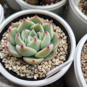 2022年交配実生 Yecora×ルビブラ この子はずっとエッジが染まってカッコイイ😍 うどん粉病でも平気そう😌 南側軒下に移動 暑くなってきてから北側で育てたけど 夏に3cmくらいまで育った子たちがバタバタ死んだ それより小さい子はなんともなかったけど 3cmくらいになると葉っぱが透明になってきて死んでしまう😭 そんな中、この子は順調やったし可愛かった😍 生き残りが10くらいやけん残りの種ば蒔いてみたけど発芽せん💦 ってか、5枚まで投稿できるようになっとる‼️