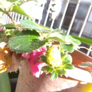 実生の赤花イチゴ。味はまぁ赤花の実生なので美味しくはナス。 基本花を楽しむ為の物ですね。