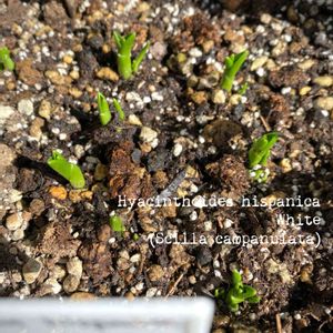 ヒヤシンソイデス💠 ヒスパニカホワイト (シラー カンパニュラタ) 秋に球根を植えたもの😊 芽が出てきてます🌱 このまま大きく育って お花を見せて欲しいなぁ💠