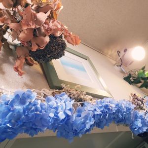 アジサイガーランド ドライになった姿も美しいアジサイ!去年作ったのも可愛くて取り外してないけど、またガーランド作りましたよ😅 今はこんなにもりもりだけど直ぐに小さくなるのでまた、足していきます‼️ 左上はユーカリポポラスの葉のドライ。 一年も経つとこんなピンクに‼️そろそろ変えようといつも思うんだけど😅一年経ってしまった😅
