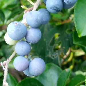 アオツヅラフジ からすうり イシミカワ 暑さのおかげかな? 生垣のあちこちに 絡まって 可愛い実が 色付いています‼️😃 三枚目… 野葡萄と思っていましたが… イシミカワの実と 教えて頂きました‼️😊