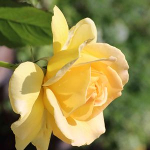 鉢植えのバラ ハニーブーケが咲いています。ハチミツのように透き通るような花色で、花びらが厚くしっかりとした花形のバラです。