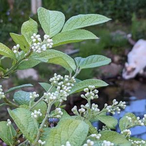 🏷木曜モフモフ 真っ白いサワフタギの花、とても大きな木にモフモフで良い香りです。 秋には美しい瑠璃色の実が成ります💕