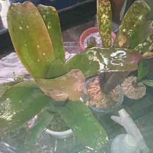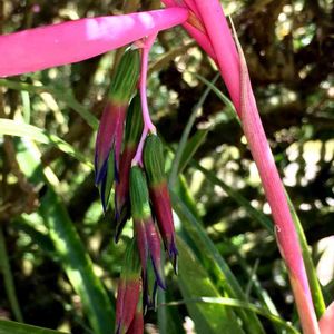 ビカクシダから垂れた水をビルベルギアが受け止めるエコ 汚い写真で申し訳ない 写真というか部屋が…