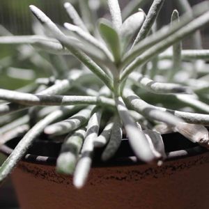 セネシオ スケイポサス(*´ω`*) スカポーサスとか、新月とかいう名前でも流通しているらしい(θ‿θ) 白いもけもけが可愛らしい子(๑˙❥˙๑)