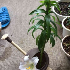 百合の花もほとんど萎れ、種を作らせないように花を切り落としました。 ありがとうね〜💕 茎は折れた百合の茎です楽しませてくれたので、記念撮影です。 今度は球根に挑戦です。 来年も咲いてくれる様に、球根を太らせた方が良いとのことで、枯れるまでしっかり光合成をしてもらわないと。 植木鉢が小さかったので、今度は倒れないように大きめの鉢にするつもりです。