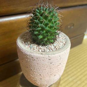 マミラリア、星月夜です。 これももう十年以上うちにいます。😃 とても丈夫で夏の砂漠のようなベランダに遮光せずともへっちゃらです。😁 春から夏頃に小さな赤っぽい花も咲いてくれて楽しませてくれます!😆