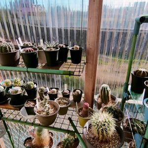 雨の日、窓辺のサボテン🌵達、開いたり開かなかったりします🎵