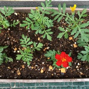 こんにちは😊 今日は朝から雨☔️です。 それで、昨日のうちに種蒔きマリーゴールドを植え替えておきました😅💕 もうお花が咲き始めた苗もあります。 元気に育ってくれますように・・🙏💓