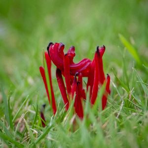 赤の火曜日。芝生のなかに赤が際立っていました。触れるだけでも炎症を起こすほどの毒性があるとか? 2025.09.23.