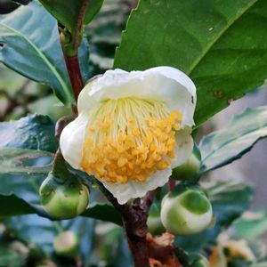 おはようございます😊 💞今日のお花 チャノキ ①大好きなお茶のお花(10月撮影) ②小さな茶畑(皇居東御苑にて)