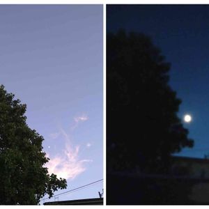 2022/08/06 そうそう、昨夜というか左夕方と右夜かな? 夕焼け小焼けのお空にお月様が見えました。 ユリノキの側に見えたのでパシヤ スーパー行ってドラッグストア行って帰宅したらお月様だけ見えたからまたぱしゃ やっぱユリノキデカくなりすぎてて・・・台風来たら危険に成ってしまってる。 夫!どーするんだ??? 今回倒れたらかなり家屋は壊れますよ!!!😱😠