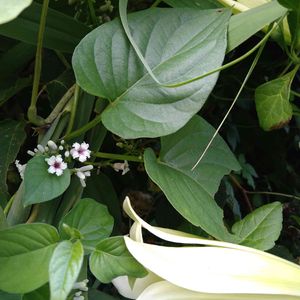 2022/08/06 おはようございます☁微妙 やっと朝顔さんがお目覚めしました😄💕💞💘 そして朝の水遣りしていて ・・・ギャァ〜〜〜〜😱😭😱😭😱😭 何がこんなに開花を遅らせるのか? 何がこんなにもメチャクチャに葉っぱをお食事会と思っているのか? デーーーツカイ蛾の幼虫が姿を現していました😭😱😭😱😭😱き、嫌いだーーー😱😭😱😭😱ホースをストレートにして弾き飛ばして踏み潰しました😱😭😱😭😱😭長靴だから出来た😭😭😭😭😭 家人誰も居ないから頼めず😭😱😭😱😭😱😭 酷い!!二匹でおそらくは蕾も出来た先から食べられていたと考えられます。 うっ😱思い出しても気持ち悪い😭😭😭😭😭 やっと咲いて嬉しかったのに😭😭😭😭 少しは咲くのかなぁ?