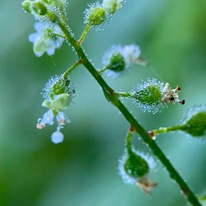 今日のお花は シソ ①② ミズタマソウ/水玉草 アカバナ科 ミズタマソウ属 原産地:在来種(北海道、本州、四国、九州) ・山野草 ・ひっつき虫 ・多年草 ・草丈:25-60(150)cm ・茎:直立し、短い屈毛があり、節が赤色を帯びることが多い ・花期:8-9月 ・花弁:白色、2個、長さ0.7-1.8mm、幅1-2.6mm、先が2裂し(ひとつの花びらがハート型)、1/4~1/2まで切れ込む ・花径:約3mm ・萼片:緑色、無毛、2個つき、長さ1.6-2.9mm、幅1-1.5mm、花弁より大きい ・雄しべ:2個 ・柱頭:2裂 ・花柄の毛はまばらで、少ない ・果実:堅果、広倒卵形 2室 長さ2.6-3.5mm 幅3-4mm、4本の溝があり、その表面一面に鈎状の毛が生える ・果径:約3mm ・種子:2個入り、裂開しない ・別名:ホシクサ 花言葉:「心の美しさ」「思いやり」 ·͜·ᰔᩚ 初めまして ずーっと会いたいと切望していた植物 山の中の道端沿いに生えているとは!! お花はなかったけど きっと咲くだろうと車から降りて確認後、何気に見回したら小さな白いお花を沢山付けた植物。 近付いて(°○°...)!! まさかの出会いに🙏✨ 花芽も付いていない植物を態々確認した自分を褒めたい。 ③ ミヤマカラスアゲハ/深山烏揚羽 ♂ アゲハチョウ科 アゲハチョウ属 ·͜·ᰔᩚ 初めまして カラスアゲハかな? ふわふわ弧を描きながら低空飛行 水が有る所にハグロトンボと私が居て、静止しないだろうと恨めしく眺めていたら、道の真ん中に着地。 何と!! 深いエメラルドグリーンの美しい翅 吸水を始めた、、、 いつも通り、にじり寄り やっと撮影。 ❁⃘*.゚今日のお花 シソ ④ アオジソ/青紫蘇 シソ科 シソ属 原産地:中国 ・和製ハーブ ・一年草 ・草丈:60-150cm ・花期:9-10月 ・別名:オオバ(大葉) 花言葉:「力が蘇る」