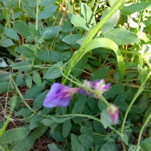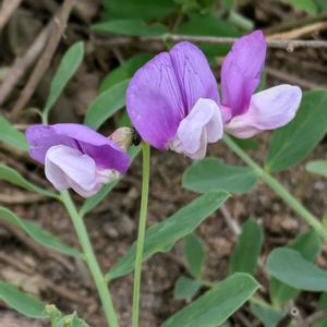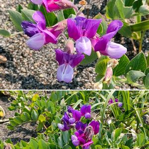 ハマエンドウ(浜豌豆) マメ科 レンリソウ属 4~7月 高さ15~40cm 在来種 多年草 つる性で、地を這って長さは約1mになる 葉は偶数羽状複葉で小葉は3~6対(6~12個) 小葉は長さ1.5~3㎝、幅1~2㎝の楕円形で先端が小さく尖る 葉軸の先端は巻きひげ状に2分岐する 托葉は大きく、基部が鉾形になり茎を抱く 花は蝶形花で、総状に数個まとまってつく ふつう旗弁(上に立ち上がっている花弁)は咲き始めは赤紫色で、徐々に青紫色へと変化する 果実は豆果で、長さ約5cm🫛 種子である『マメ』は、若い芽とともに食用にできるらしい(しかも美味い)が、下半身麻痺を引き起こす毒があるそうだよ… 多食しなければいいみたい🤏🏼