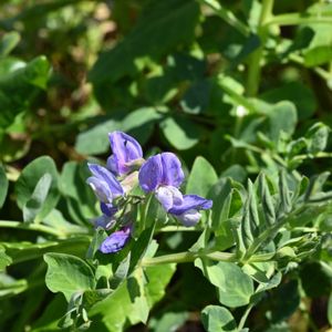 今日2枚目は初めて出会え 感動のハマエンドウ💜🩵💙 マメ科レンリソウ属の多年草 観賞用のスイートピーの仲間で和名の由来はエンドウに似た実で浜辺に生えるから🌊 別名-キツネマメ、ハマゴマメ、ハマノマメ🫛 🏷️水曜日は水色 午後も宜しくお願いします😊 ①お花は総状に3〜6個付き長さ2.5〜3cm💜 旗弁は始め赤紫色で後に青紫色に💙💜🩵 ②長さ約5cmてま幅約1cm殆ど無毛の豆果の赤ちゃんが🫛 小葉は6〜12個で長さ1.5〜3cm幅1〜2cmの楕円形🌿 托葉は大きく小葉とほぼ同じ大きさ🌿 ③こんな感じで日本全土の海岸の砂地に生え稀に湖岸や川岸などにも見られるそう💡 ④こちらは同じマメ科の ムラサキセンダイハギ💜 観賞用に栽培されるマメ科の多年草でアメリカ東部原産🗽 ⑤豆果は長さ2.5~7.5㎝×幅1.25~2.5㎝で短い長円形🫛 先に細い嘴があります🦜 🏷️素敵な水曜日 🏷️愛の花♡ ①②③牧野植物園で🏞️2025.5.18 ④⑤小石川植物園で🏞️2025.5.29