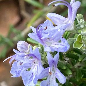 一年中絶えることなくよく咲いて、良い香りを放ってくれるローズマリー💓 葉っぱをキュッキュとして癒されています 精油には強壮や血行促進に効果がある 花言葉は「思い出、追憶」 今年もありがとう*'ω`*)σ⌒︎♪︎+。 🏷青い花で忘年会2022 🏷水曜日は水色