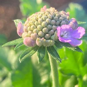 朝陽を浴びてスカビオサが開き始めました💜花言葉は「再起」 😍きっとこんな顔で見つめていたと思います❣️ あっという間の1週間💦 🏷金曜日の蕾たち 🏷青い花で忘年会2022