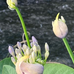 水べりの可愛い蕾ちゃん今年もこんにちは😃 駐車場裏の小さな水路沿いに楽しみなアガパンサス💜 🏷金曜日の蕾たち