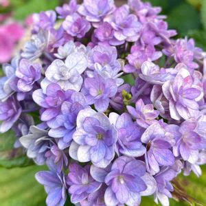 🌸💠🌿ウズアジサイ(渦紫陽花)💗💜 別名オタフクアジサイ 昔〜❣️ 一本の枝をいただき3本に✂️ 挿し木して3株庭に植えました💕 同じ枝からの紫陽花なのにピンク色紫色ブルーかかった紫色とまちまち😱💦 それだけではなく 今年は ↗️から↘️ピンク色の普通の紫陽花が一輪咲きましたよ(・・?)どうした〜🌸🌿💦