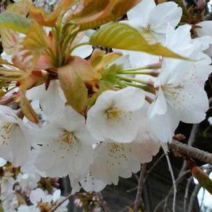 少し前の写真ですが、実家の桜の花、ソメイヨシノより遅咲きの花です