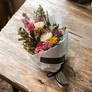 すっぽりと手におさまるほどの、小さなドライブーケ ドライフラワーの優しさがたっぷりつまっております🌼 今朝も東京は冷たい雨です。 桜がちらないといいな。。。