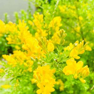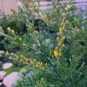 昨年見切り品だった方、ふくらんできた〜 エニシダは西陽ガンガン当たっても平気です、えらいです。