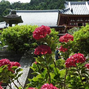 🏵️アジサイ🏵️と本堂と鐘楼 あじさい寺(矢田寺)にて😘 R6年6月19日撮影📷