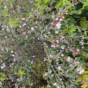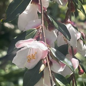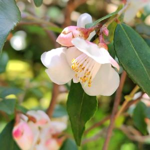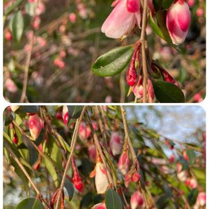 ①② カメリアエリナカスケード おはようございます 昨日の名前のわからない木を教えてもらったので、こちらも気になってましたのでやっぱりpicします🙏🌸 枝は枝垂れています💚 蕾が開き出す頃、濃いピンク色でとても綺麗だったと従業員の方が言ってましたよ🌸 南国市美容院庭 4/24 画夢さんにカメリア エリナカスケードと教えてもらいましたよ🌸 中国の野生種を品種改良したツバキなんだそうです🌸 お花の一つ一つが可愛いです💕