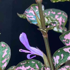 キレイな柄の葉っぱのもとから 美しい紫のお花が咲きました✨💜👍 こんなところから咲くんですね~✨