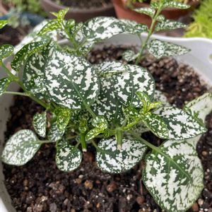 PWガーデンピポエステス 花が咲いてた〜!🤭 * 調べると、ヒポエステスに花が咲くのは 『株が充実して順調に生長してる証拠』 だそうです✨嬉しい(^^) 確かに底穴から根っこが飛び出してる😂