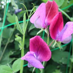 豆じゃないよ! スイートピー! ネット張ったら次の日しっかり掴まっててかわいい〜😭✨✨✨ おまけでもらった種だけど、調べたらすごく可愛いお花が咲くらしい! 楽しみ💖