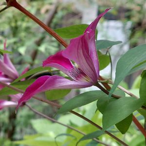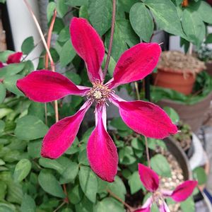 遅咲きのテキセンシス系クレマチス クラベティビューティー✨ 昨年まで根の調子が悪かったのですが、2年ぶりにお花が復活してくれて嬉しい💓