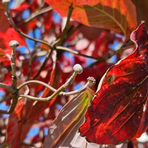 🍁ハナミズキ🍁 (ミズキ科 ミズキ属) こんなに綺麗に紅葉しているのは…珍しいかも…😍 虫にも食われずの大きな葉っぱ 倍くらいはありそう🍂 我が家の鉢植えの紅葉は🪴🍁穴あきに色悪し🤣葉っぱは小さい💦 種類とかあるのかな❓ たまたま撮った所に 蕾と実が落ちた後の可愛いお姿 ビヨ〰ンと競争してるかのような…😆良きライバル✌️グラフかなぁ🤭 日当たり 風通し良好の良い場所✌️ 地面に赤い葉っぱ🍂 赤ちゃん組のお散歩 落ち葉を🍂先生にねだる子供達💕 ほのぼのとした光景 赤色♥️元気印💪🤭
