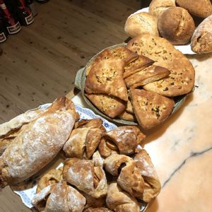全粒粉1.5キロ分のパン焼き上がり。 生地そのままの丸いパン りんごとクランベリーシナモンシュガー ガーリック塩パンの3種 今日は、高校時代からの親友の誕生日。 夕方に届く様にお昼過ぎから仕込んだ全粒粉生地のパン。 粗熱が取れたら、車て25分の親友宅へ届けます。